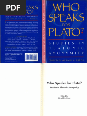 Gerald A Press Ed Who Speaks For Plato Studies In Platonic Anonymity 2000 Rowman Littlefield Publishers Pdf Pdf Plato Socrates